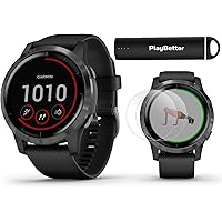 PlayBetter Garmin vivoactive 4 (Slate/Black Band) Fitness Smartwatch Power Bundle | 2019 Model | with HD Screen Protectors (x4) Portable Charger | Spotify, Music, Garmin Pay, Health Monitoring