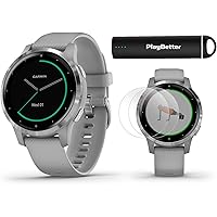 PlayBetter Garmin vivoactive 4S (Silver/Gray Band) Fitness Smartwatch Power Bundle | 2019 Model | with HD Screen Protectors (x4) Portable Charger | Spotify, Music, Garmin Pay, Menstrual Tracking